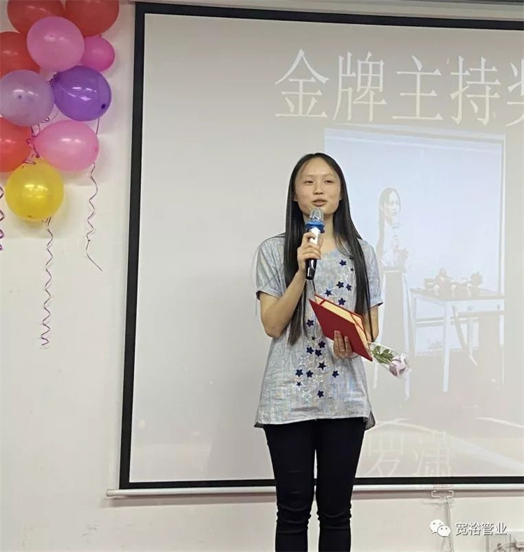 (寬裕銷售經(jīng)理毛鳳明女士在臺(tái)上做工作總結(jié)展望)